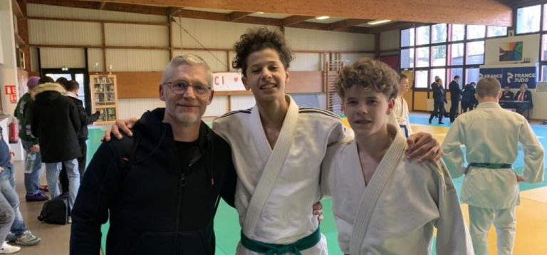 Elisa monte sur la 3ème marche du podium. Très belle compétition! Elle gagne de beaux combats, tout ça sur une jambe car blessée au genou. Yvain, avec son judo atypique et une détermination sans faille termine 2ème…